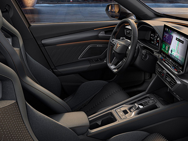 De CUPRA Formentor heeft een 12,9 inch touchscreen. Met CUPRA CONNECT geniet u van online kaarten, entertainment en spraakherkenning. Ook heeft u met de My CUPRA app bediening op afstand, zoals: op afstand vergrendelen/ontgrendelen, voorverwarming en laden.