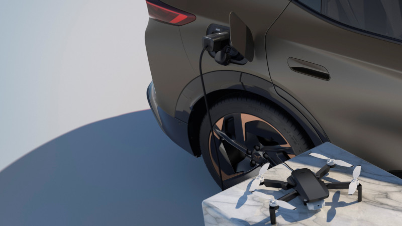 De CUPRA Tavascan krijgt er een handige nieuwe functie bij met Vehicle-to-Load (V2L). Hiermee kan de auto stroom leveren aan externe apparaten, zoals laptops, e-bikes of audiosystemen. Met een speciale adapter fungeert de Tavascan zo eenvoudig als een mobiele energiebron, ideaal voor onderweg of op locatie.
