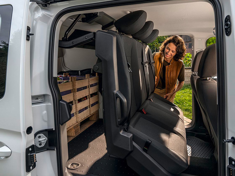 De Caddy Flexible eHybrid is ontwikkeld voor ondernemers die hun bedrijfswagen zowel zakelijk als privé willen inzetten. Dankzij de slimme, opklapbare driezits achterbank op de tweede zitrij kan de auto eenvoudig worden aangepast aan het gebruiksmoment. In enkele handelingen verandert de Caddy van een volwaardige vijfzitter naar een praktische laadruimte voor materialen of goederen. De opklapbare achterbank is gecombineerd met een scheidingswand, waardoor comfort voor inzittenden en functionaliteit voor lading samenkomen. In de Caddy Maxi Flexible eHybrid bedraagt het laadvolume tot 3.100 liter, wat de auto geschikt maakt voor uiteenlopende toepassingen. De Caddy Flexible eHybrid heeft een elektrisch rijbereik tot maximaal 120 kilometer** (WLTP) en is te bestellen vanaf € 34.890*.