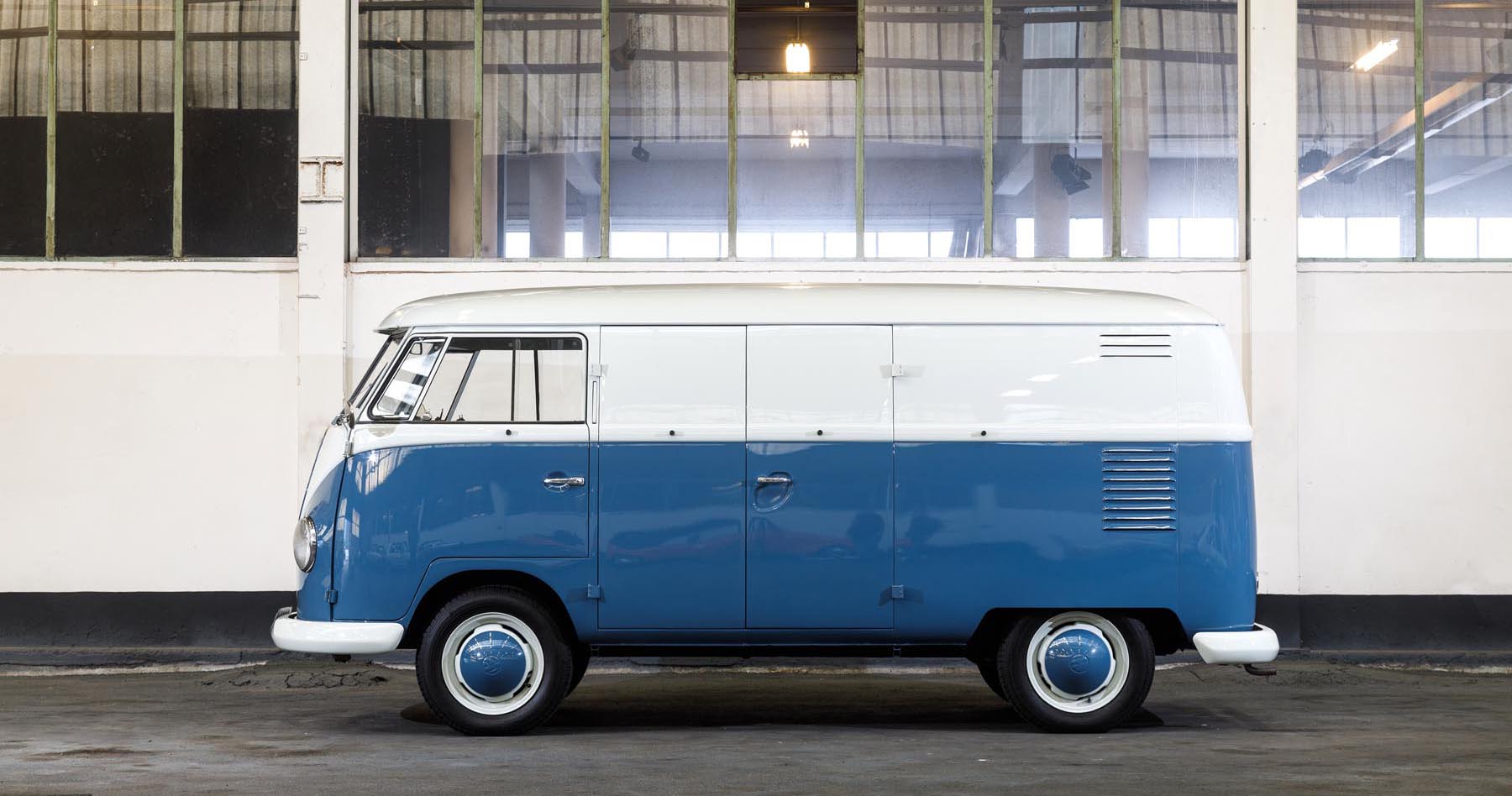 Het allereerste Type 2-model (T1), met de voorruit met een metalen spijltje in het midden, de ‘spijlbus’ of de Microbus / Transporter, werd geproduceerd tussen 8 maart 1950 en het eind van 1967.