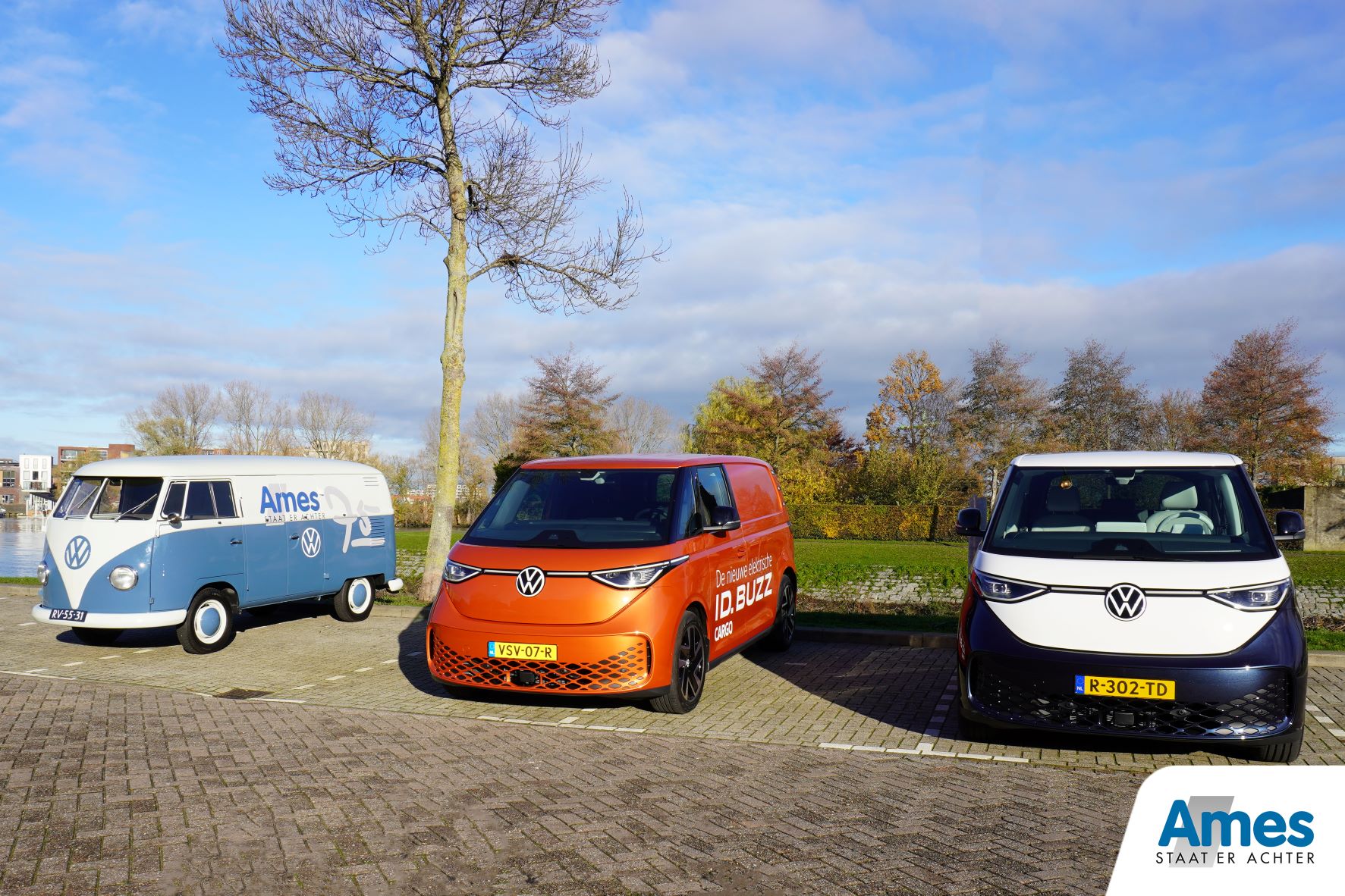 Toen wij de ID. Buzz binnenkregen gingen wijdirect op pad met de ID. Buzz, ID. Buzz Cargo en onze Volkswagen T1. De innovatieve ID. Buzz bezit immers duidelijke kenmerken van de Volkswagen bus waar het allemaal mee begon. Daarom hebben wij voor deze speciale gelegenheid jong en oud samengebracht.