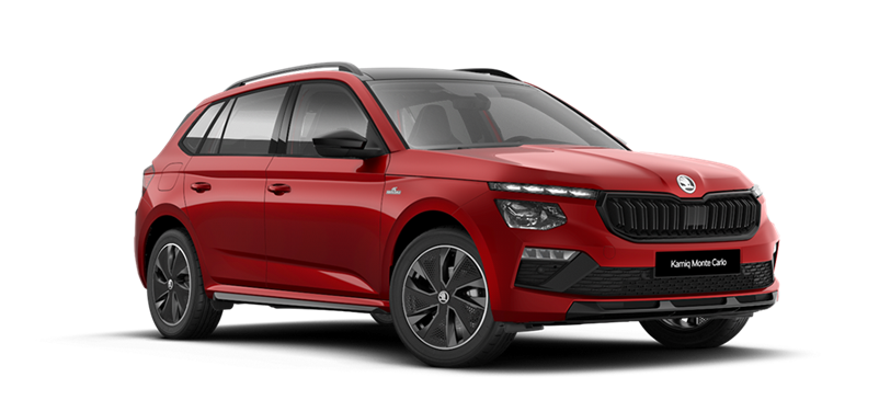 Met de Monte Carlo-uitvoering van de Kamiq wordt de auto sportief van binnen en buiten. Aan de binnenkant worden sportstoelen en rode details en carbon accenten toegepast, aan de buitenkant valt de Kamiq Monte Carlo op met het panoramisch dak en een zwarte grill.