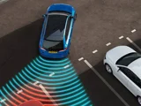 Sensoren in de bumpers houden de afstand in de gaten rondom de auto.